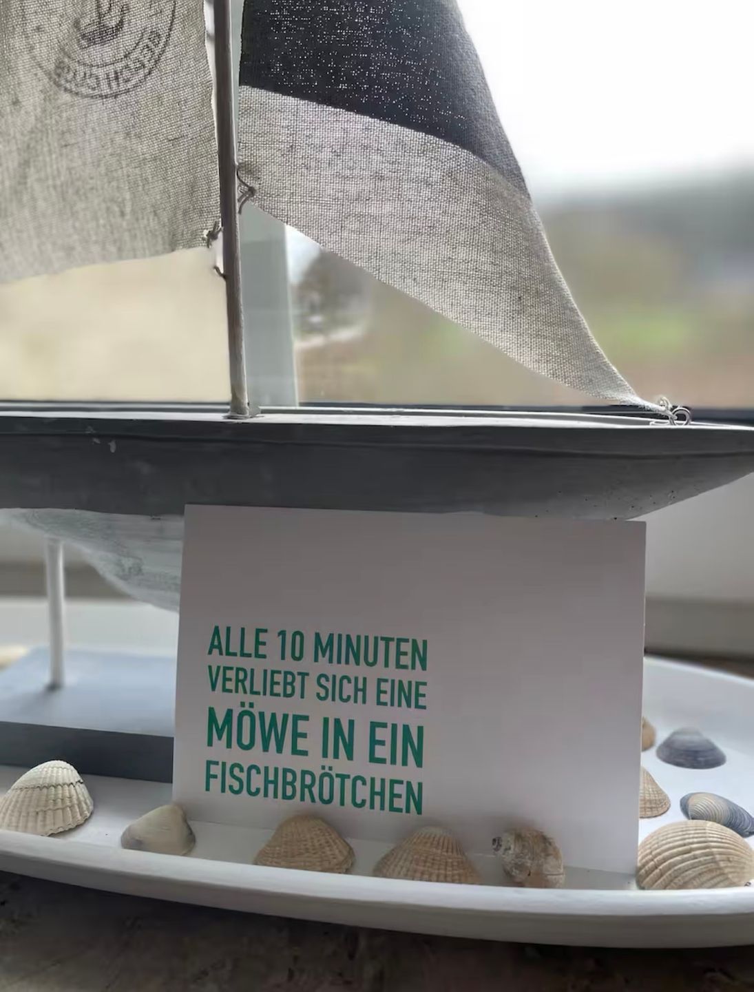 Ferielejligheden er et ikke-ryger-overnatningssted. Med sin stilfulde, moderne indretning er den perfekt til par eller enlige rejsende, der sætter pris på ro, komfort og en maritim atmosfære. På grund af den direkte beliggenhed ved stranden og de mange fritidsaktiviteter som svømning, sejlads, surfing, nordic walking, vandreture, cykelture eller minigolf tilbyder den de bedste betingelser for aktive feriedage. Den nærliggende skov og den idylliske bugt understreger den attraktive beliggenhed mellem naturens glæder og byens tilgængelighed.